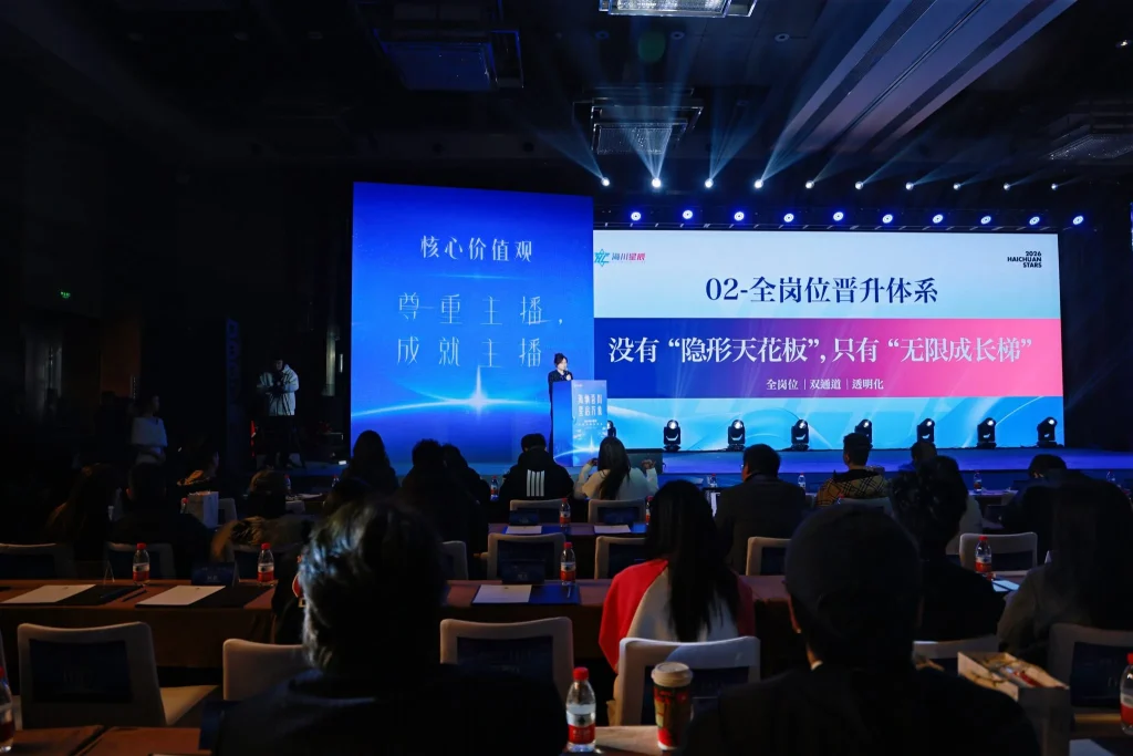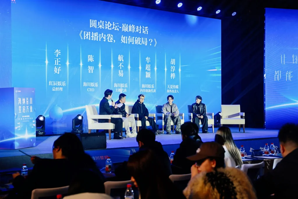 发布会还设置了两场高质量圆桌论坛。首场论坛以“团播破局与内容出海”为主题,与会嘉宾就行业发展趋势、内容创新等议题进行深入探讨。第二轮论坛聚焦“团播属性与人才发展”,各分公司负责人分享了实战经验,展现了海川星辰清晰的合伙人成长路径。